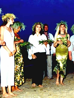 A droite, en vert, Zlata Lada, prêtresse d'une association de néo-paganisme. |