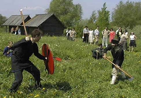Les jeunes nobles jouaient à des jeux d'adresse et organisaient des compétions publiques lors des fêtes. Ces jeux se sont largement démocratisées et ont été, en partie, adoptés par la campagne. Les femmes devaient se conteter d'admirer ces spectacles. |
