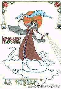 Lada : une des rojanitsy, représentée souvent à cheval, avec un araire (sokha) sur la selle. Parfois considéré comme déesse du printemps. On chantait des chansons en l'honneur de Lada entre le 9 mars et le 29 juin. Son animal est l'ours. "Lada" par Veleslav www.slavianstvo.org/ru/ |