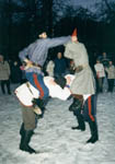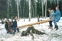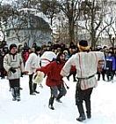 | Maslinitsa, une des fêtes les plus importantes, marque l'adieu à l'hiver. Elle commençait le 23 mars et durait une semaine. Des forteresses de neige étaient érigées et une bataille de boules de neige s'engageait, symbolisant la lutte entre l'hiver et le printemps. On luttait également à coups de poings. Déguisements, danses et alcool rechauffaient les participants. Le dernier jour on brûlait l'effigie de l'hiver. Commençait alors le temps de Iarilo qui se terminait en juin, le jour de Koupalo. | |||||