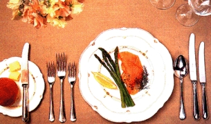 Les couverts se mettent à l'occidentale, face des fourchettes et cuillères vers le haut. Le pain qui accompagne tous les repas a souvent droit à une petite assiette spéciale. Ne vous étonnez pas si, dans les familles, on ne vous met pas de verre. Peu de personnes boivent pendant le repas surtout quand il y a de la soupe. On boira plutôt du thé en fin de repas. |