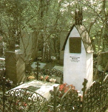 La tombe d'Anton Tchekov à Moscou ressemble étrangement à une "domovina", les tombes des anciens Slaves, en forme de maison, sans entrée mais avec une fenêtre par laquelle on déposait de la nourriture pour le défunt. Les oiseaux qui mangeaient ces offrandes étaient considérés comme une émanation de l'âme des morts. |