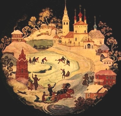 A l'aube, Vassilissa enfouit le crâne sous terre, ferma la maison à clef, partit en ville.